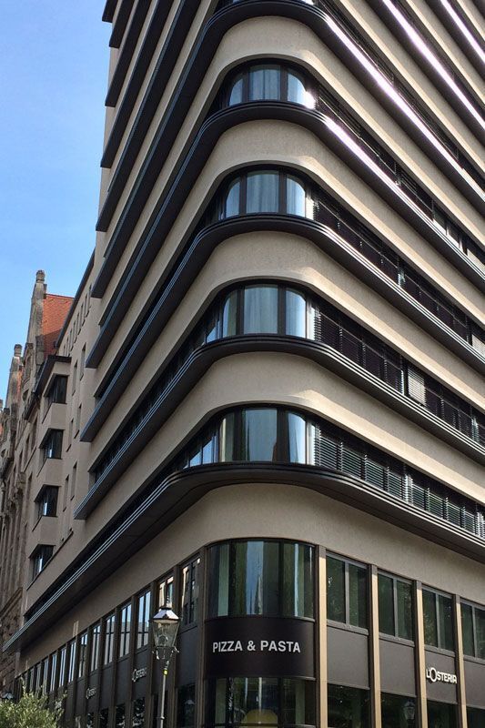 ca. 400 m Sonderfensterbänke, mehrteilig, mit integrierter beheizter Rinne, teilweise gerundet